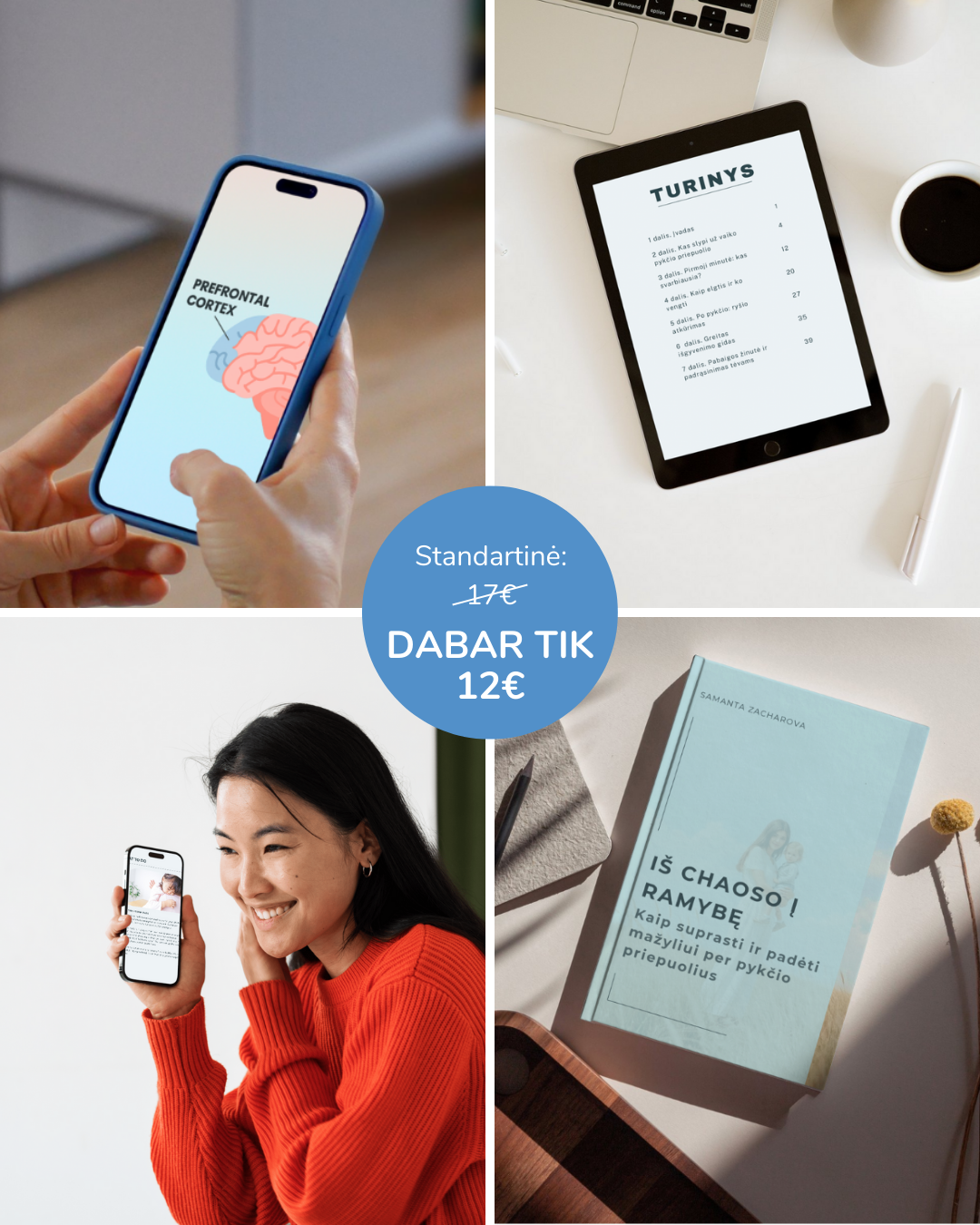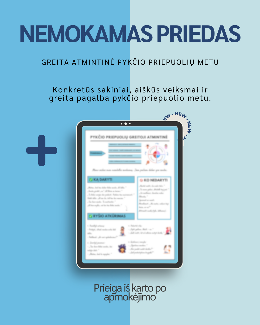 Per vaiko emocijų protrūkį žinosi, ką sakyti pirmą minutę. Nereikės improvizuoti ar kelti balso. Reaguosi ramiau, nes turėsi konkretų planą.