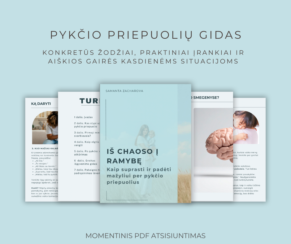 Kai vaikas patiria stiprias emocijas, svarbiausia yra ne pamokymai, o aiški ir nuspėjama suaugusiojo reakcija. Šis gidas padeda reaguoti į vaiką taip, kad tantrumo eiga nesiplėstų ir greičiau stabilizuotųsi. Naudojant šį gidą, vaikas:
